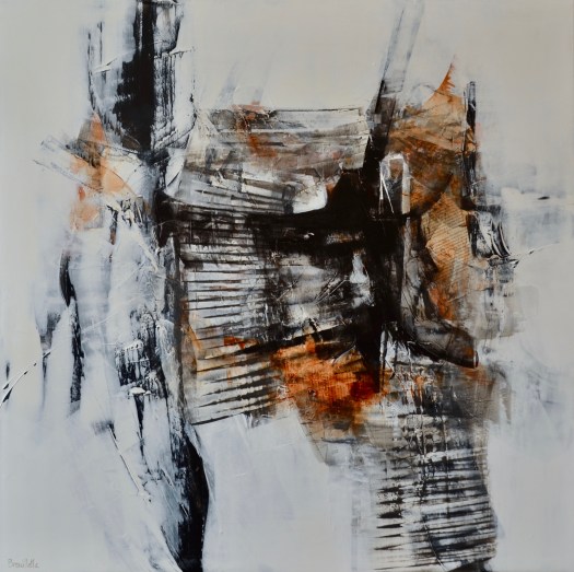 Between the Lines, 40x 40 inches, acrylic, collage and graphite on canvas