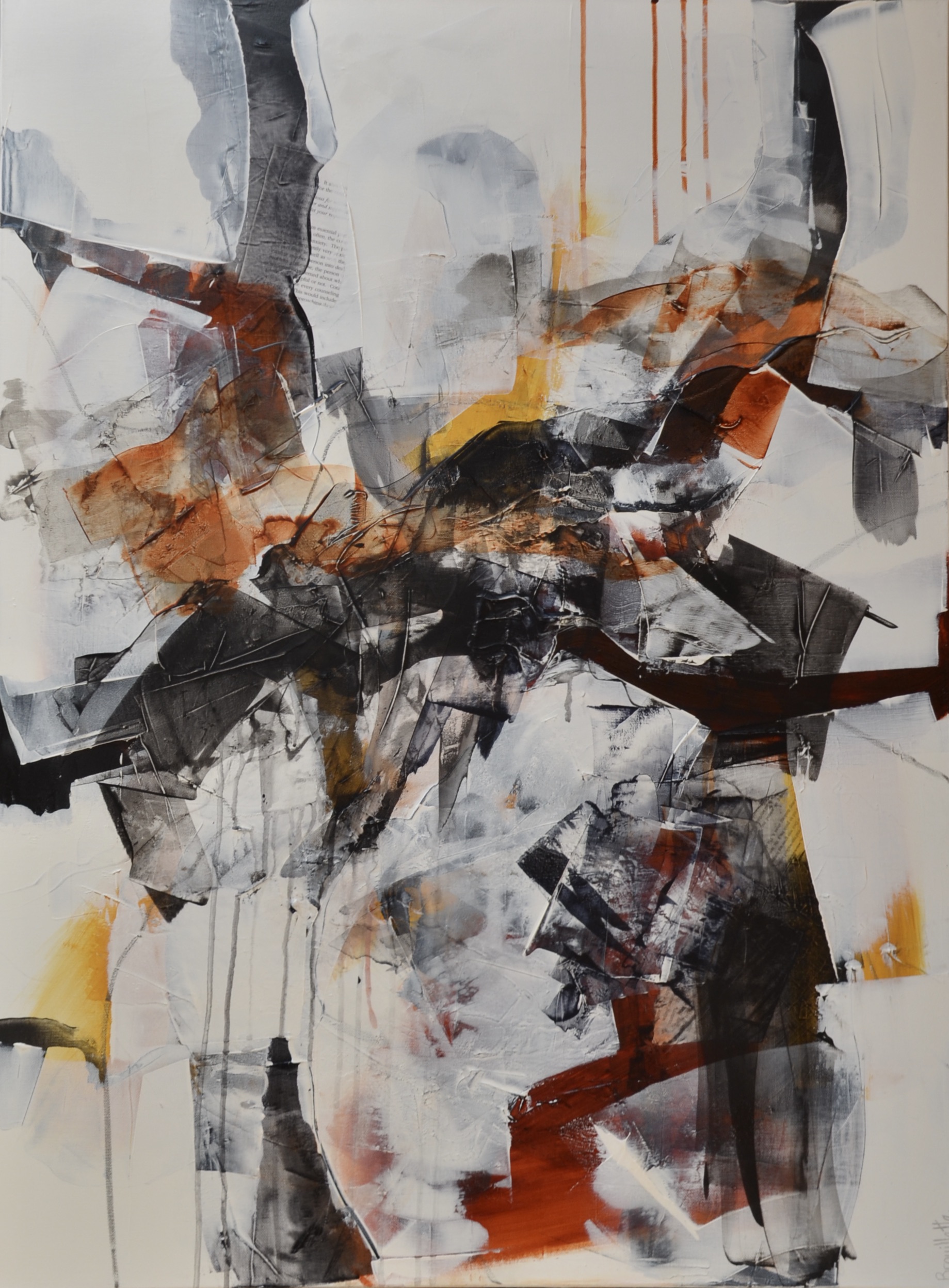 Between the Lines, 48x 36 inches, acrylic, collage and graphite on canvas