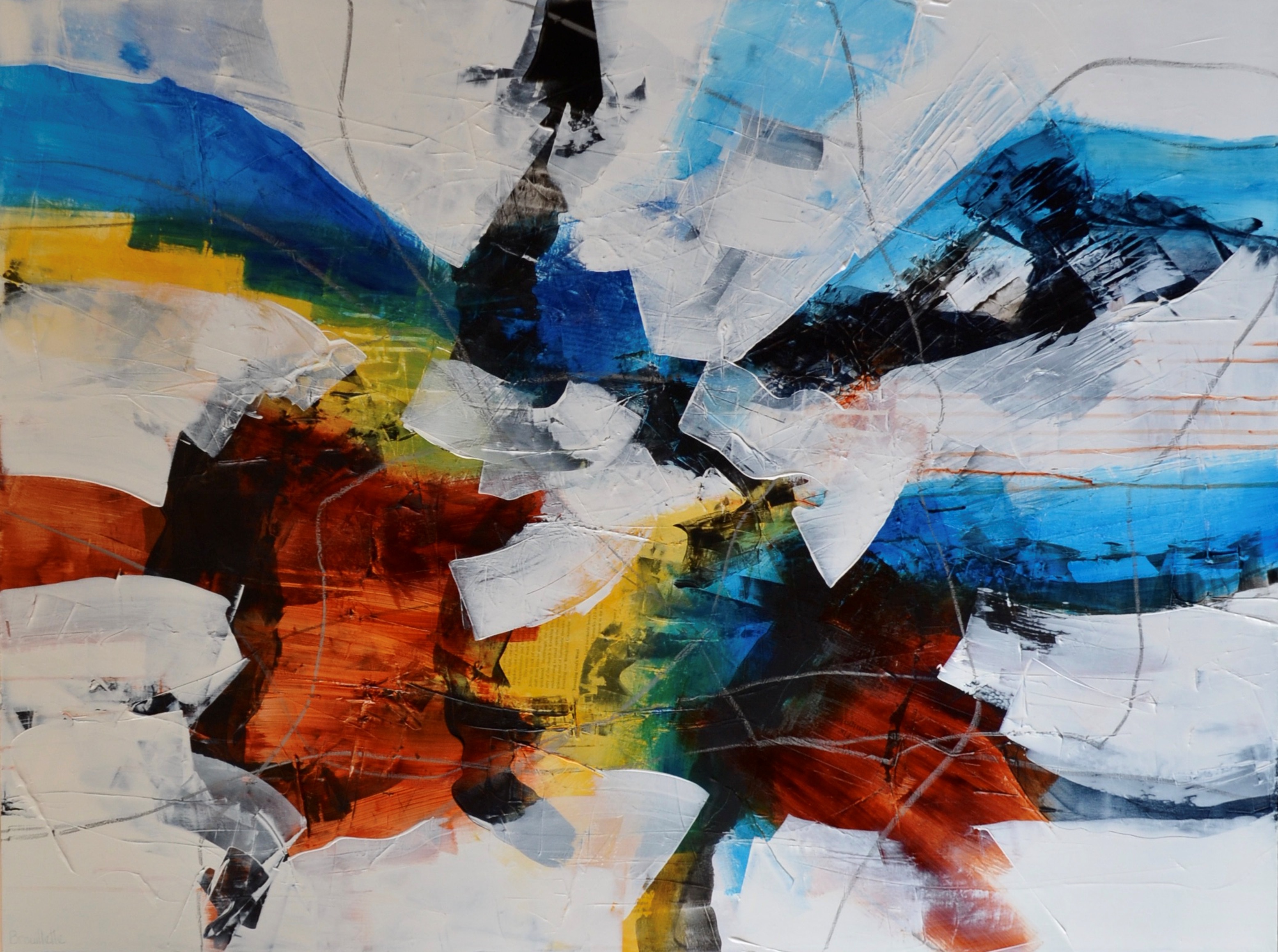Joie de vivre III, 60 x 48 acrylic, collage and graphite on canvas