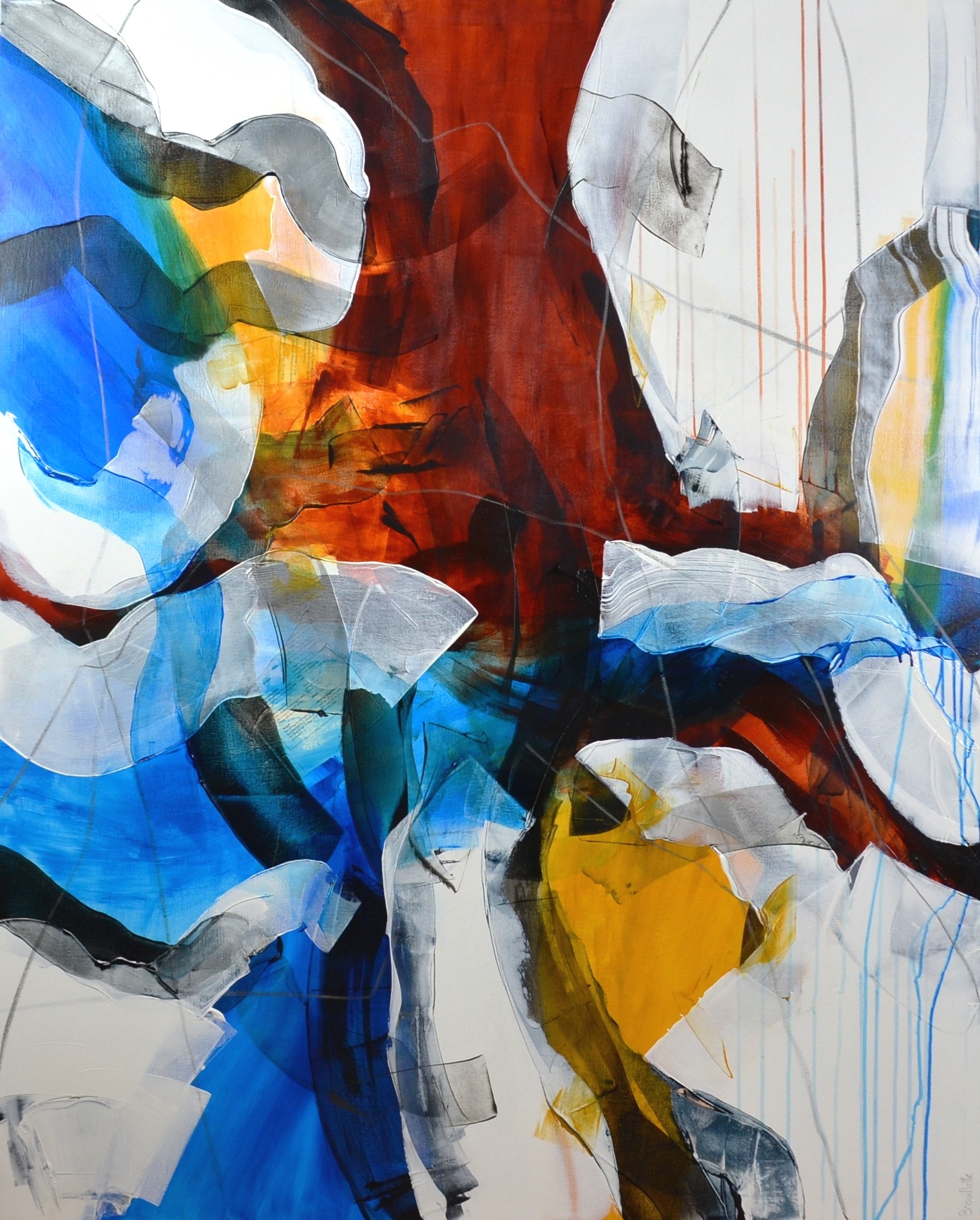 Joie de vivre II, 48 x 60, acrylic, collage and graphite on canvas (SCA Antoinette-Stevens Best in Show)