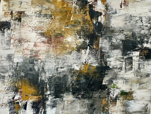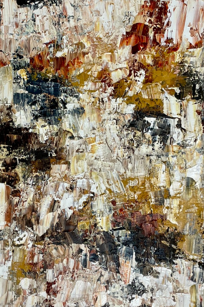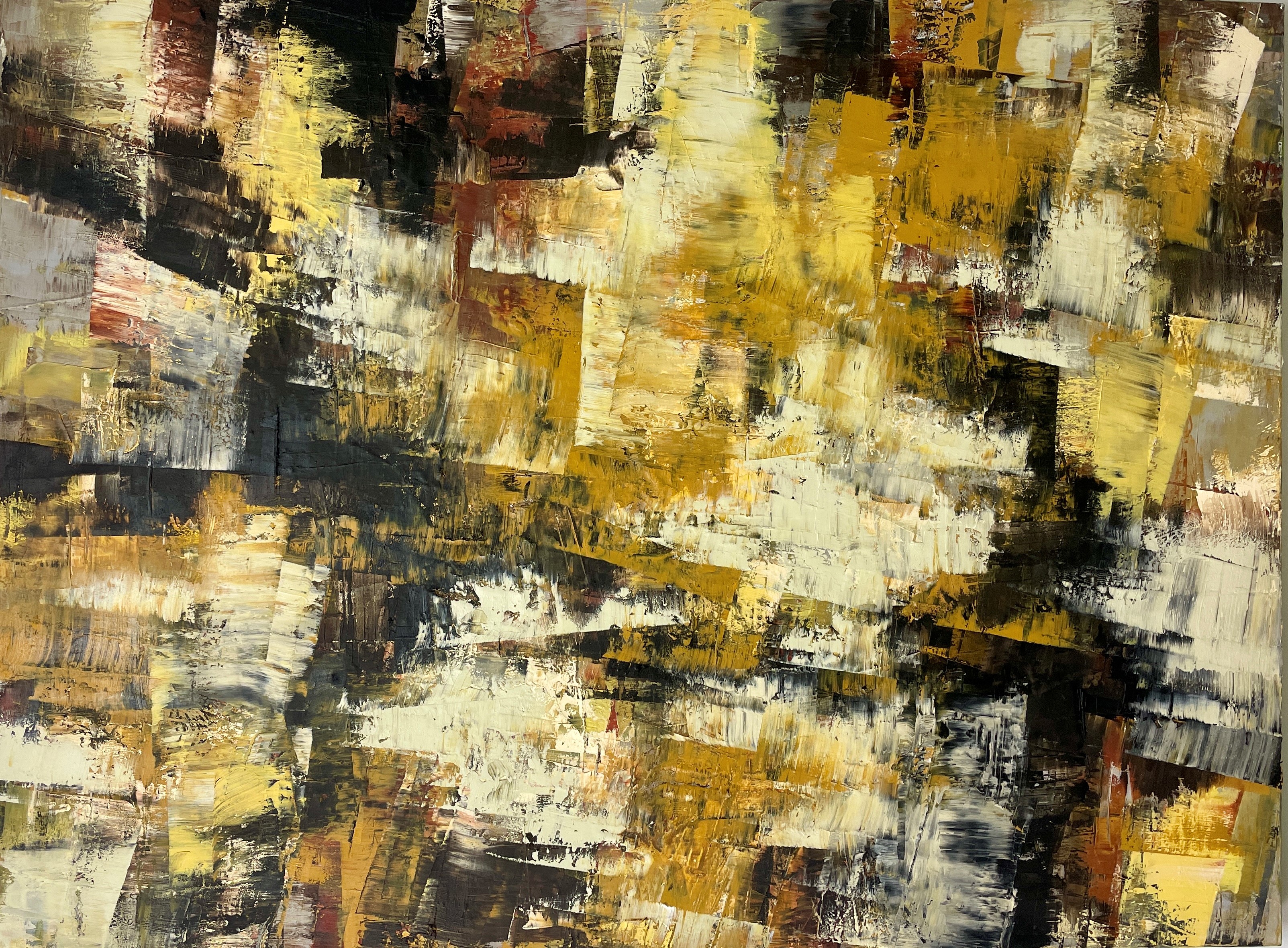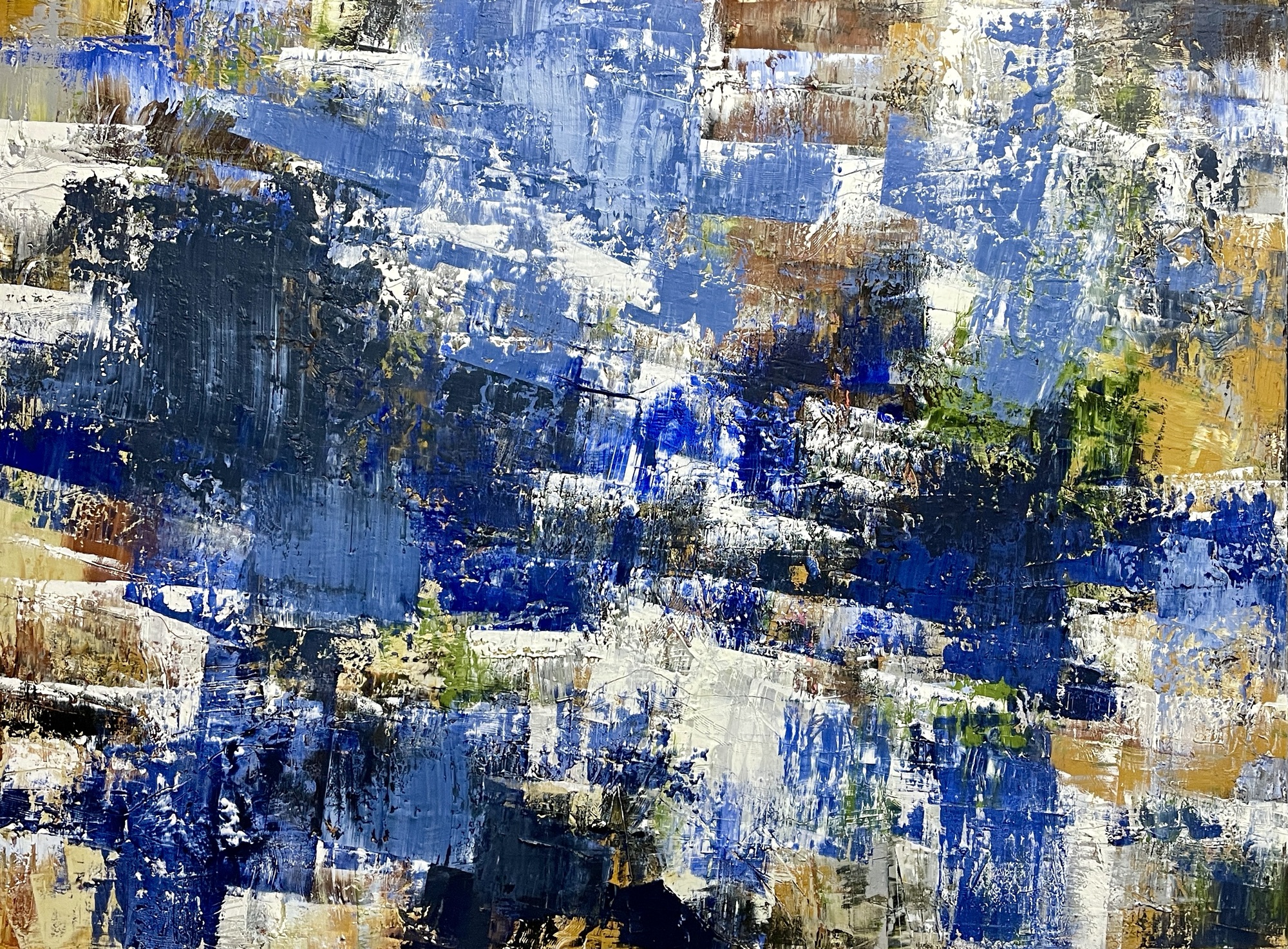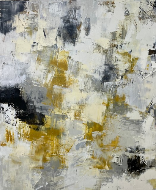 The work in this series is technically non-representational, but to say that would be a disservice to the countless natural inspirations in the artist’s daily life. Each painting was created in a gestural, expressionistic style, yet references the highly influential Canadian landscape around her.